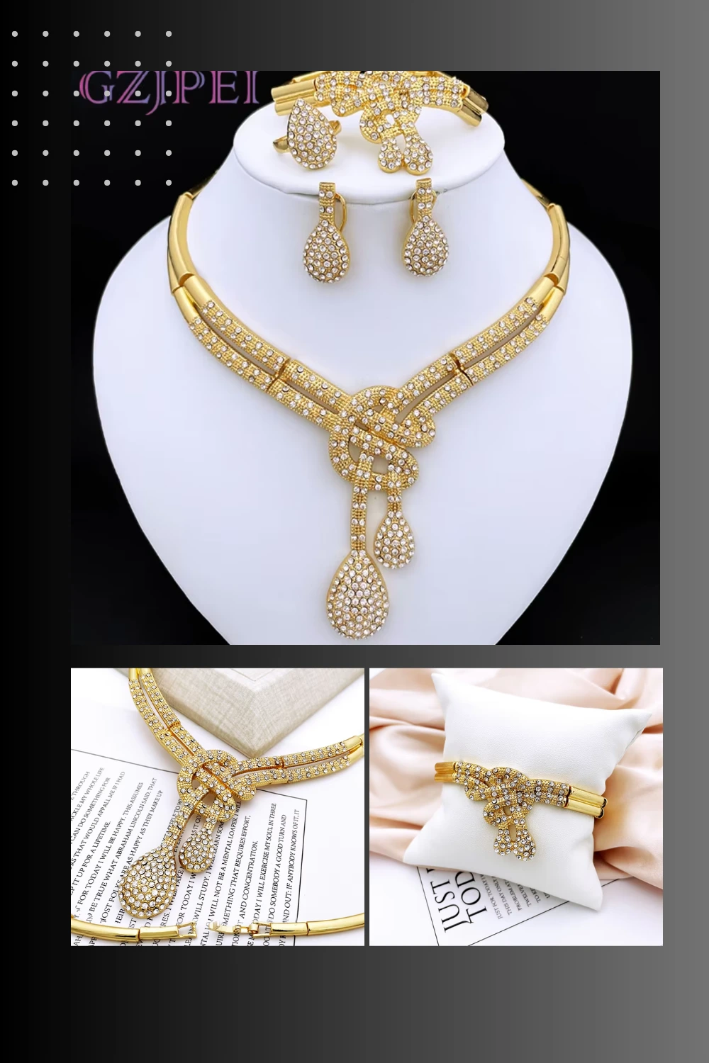 Shine with timeless elegance in this luxury crystal bridal jewelry set. Featuring a sparkling statement necklace and matching earrings, this set is designed to add glamour to weddings, engagements, and special occasions. Crafted with high-quality alloy and dazzling stones, it offers brilliant shine and long-lasting beauty. Perfect for brides, bridesmaids, or evening parties.